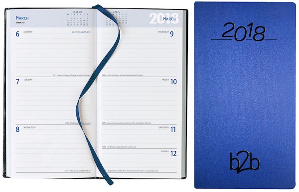 Week To View Portrait pocket diaries. Bound in Nero. White paper.